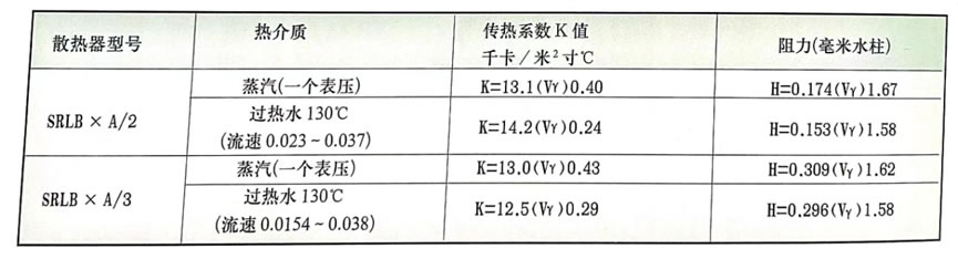SRL型空气热交换器传热系数、阻力如下表