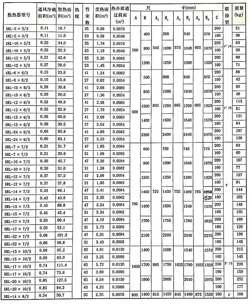 SRL型散热器基本参数见表
